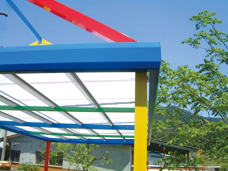 アルミニュウム素材で雨によるサビや腐食をよせつけず、高性能のルーフ材が紫外線から子供達をしっかり護ります。